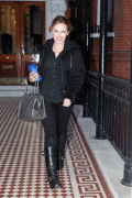 Kylie Minogue is all smiles as she leaves her home in black. 12.12.09 (8x)
