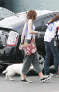 with her Dog - Arriving at a studio in LA -Feb 4-