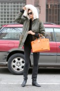 Irina Shayk "Tests out the hood of her new jacket while wearing an orange handbag in New York" (01.12.2014) 16x