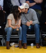 Mila Kunis "React after being shown on the video board during the "kiss me camera" feature during the game between the Oklahoma City Thunder and the Los Angeles Lakers" (19.12.2014) 4x+68x