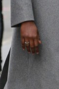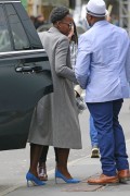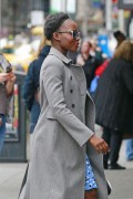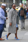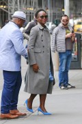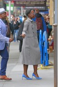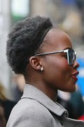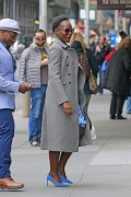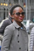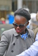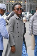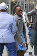 Lupita Nyong'o "Wears blue colored shoes paired with polka-dotted blue dress under a jacket at her Broadway play "Eclipsed" in New York" (13.03.2016) 19x