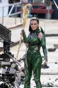 Elizabeth Banks "Shoots a cable stunt and has a wardrobe malfunction but is saved by her leotard costume for Power Rangers in Steveston Village, Richmond" (26.042016) 27x